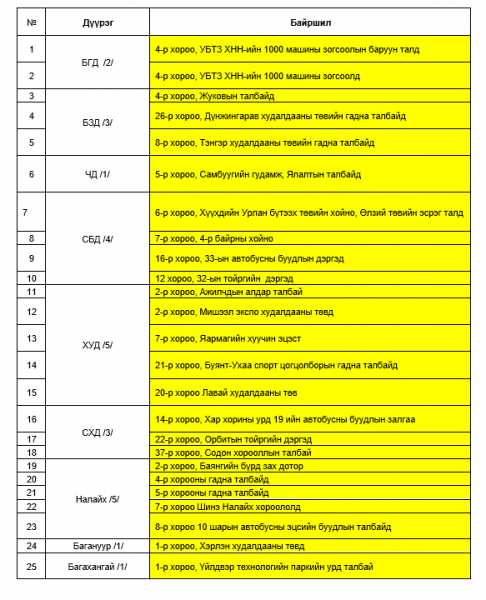 "Алтан намар" хүнсний ногооны үзэсгэлэн худалдаа зохион байгуулж байгаа байршлууд
