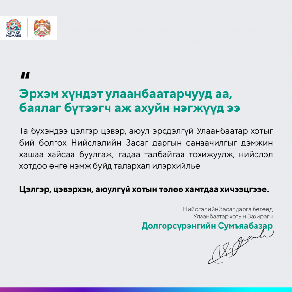 Цэлгэр, цэвэрхэн, аюулгүй хотын төлөө хамтдаа хичээцгээе.