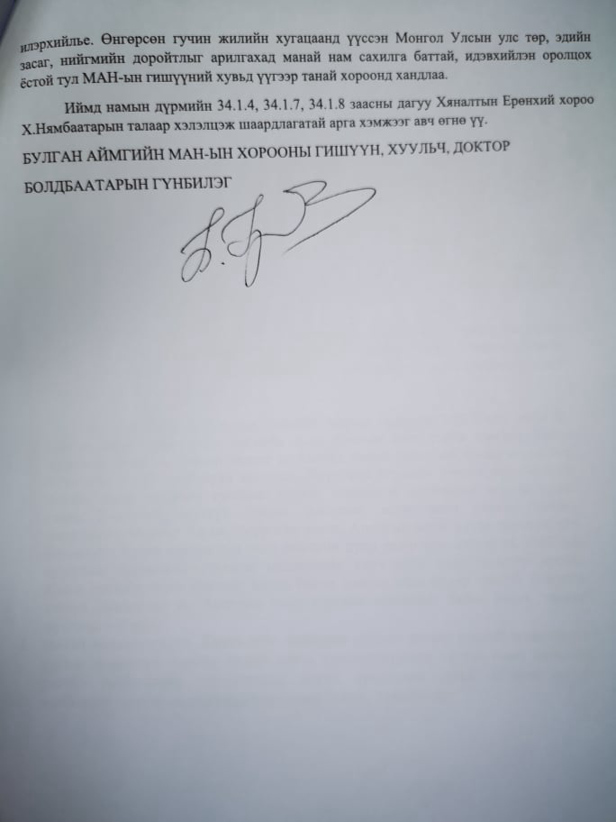 Хуульч Б.Гүнбилэг нь Булган аймгийн МАН-ын хорооны гишүүн юм.