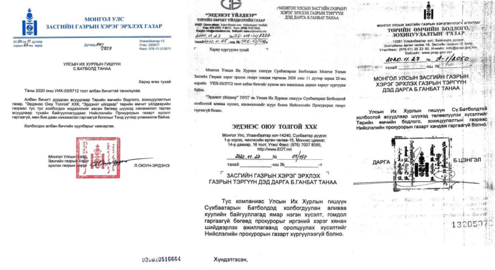 -Дээр дурдсан асуудлаараа үүсгэсэн иргэний маргаанаа дотооддоо болохоор “маш нууц” гэсэн зэрэглэлд оруулсан байгаа юм. Хэзээ иргэний маргаан манайд “маш нууц” ангилалд ордог байсан юм. Хэнээсээ юугаа нуугаад байгаа юм бэ? Маш нууц гэсэн атлаа миний олж үзэж чадахгүй байгаа тэр детектив зохиол, гүтгэлэг бүхий бичвэр нь яахаараа гадны нэг блогчинд очсон байдаг юм бэ? Дотоодын хэвлэлээр ч гараад байх шиг байна. Хэн ямар зорилгоор тараагаад байгаа юм бэ? Ер нь гадны хувийн, хөлсний, ашгийн төлөө байгууллагад мөнгө төлж иргэнээ мөрдөж тагнасан, гүтгэлэг зохиолгосон, хууль шүүхийн байгууллагад улс төрийн сонирхлоор нөлөөлсөн байж болзошгүй нь өөрөө Үндсэн хууль зөрчиж байгаа хэрэг юм. Би монгол хүний хувьд энэ асуудлыг Монголынхоо хуулийн байгууллагаар шалгуулна. Монголынхоо шүүхээр зөв буруугаа шүүлгэнэ. Би чинь тусгаар Монгол Улсын иргэн биз дээ.