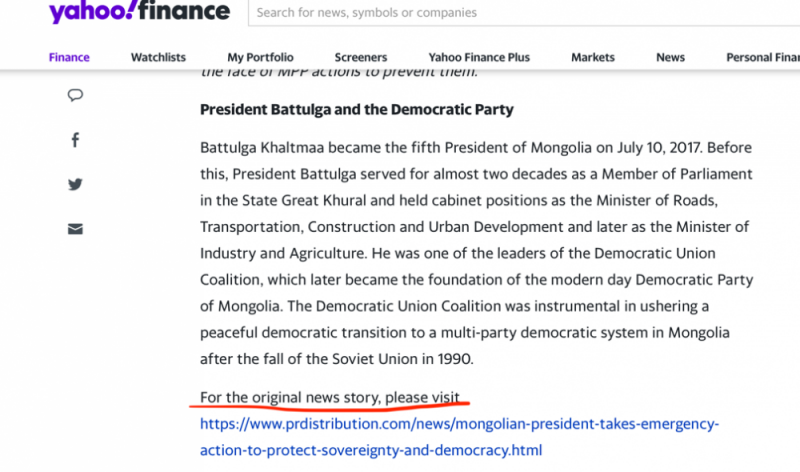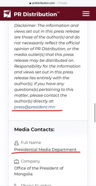 Манай Ардчилсан нам болон Х.Баттулгатай холбоотой мэдээллийг “DCI” фирмийн Дэд ерөнхийлөгч Кэвин Ивэрс болон ахлах ажилтан Райн Грилло, төслийн зохицуулагч Ребэкка Невилл зэрэг хүмүүс хариуцан олон улсын хэвлэлүүдэд түгээх ажлыг хийсэн нь удаа дараагийн и-мейлүүдээс харагдлаа. Yahoo зэрэг уншигчдад танил болсон сайтууд тэдний гаргасан мэдээллийг төлбөртэй хэсэгтээ нийтэлсэн бөгөөд нийтлэлийн төгсгөлд уг мэдээллийн эх сурвалж хэмээн өөр холбоосуудыг зааж өгсөн байгаа. Тэрхүү холбоосоор нэвтэрвэл “PR Distribution” гэх төлбөртэйгээр хэвлэлийн мэдээ түгээдэг агентлагийн вэб сайт бий. Улмаар “Монгол Улсын Ерөнхийлөгч ардчилал, бүрэн эрхэт байдлаа хамгаалах яаралтай алхам хийлээ” гэх гарчигтай хэвлэлийн мэдээг Монгол Улсын Ерөнхийлөгчийн Тамгын газраас гаргуулсан төдийгүй харилцах хэсэгт Ерөнхийлөгчийн Хэвлэл, мэдээллийн алба гэдгийг бичсэн байна. Мөн “Энэхүү хэвлэлийн мэдээ нь захиалагчийн бэлтгэсэн нийтлэл бөгөөд агуулгын хувьд “PR Distribution” болон үүнийг нийтэлсэн бусад редакцын агуулгатай хамааралгүй болно” гэсэн тайлбар бичжээ.