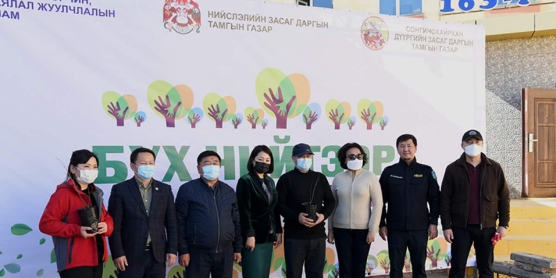 Өчигдөр НЗДТГ, Нийслэлийн Байгаль орчны газар, Зэвсэгт хүчний жанжин штаб, “Чинагийн Галсан сан” ТББ хамтран Баянзүрх дүүргийн 20-р хорооны нутаг дэвсгэрт Баянзүрх хайрханы Бага зүрхний ар энгэрт доройтсон ойн сан бүхий газарт 20.000 шинэс модны тарьцаар ойжуулалт, нөхөн сэргээлт хийсэн бол өнөөдөр Сонгинохайрхан дүүргийн 163 дугаар цэцэрлэгийн гадна бичил ногоон төгөл байгууллаа. Ногоон төгөл байгуулах ажилд УИХ-ын гишүүн П.Анужин, УИХ-ын гишүүн Б.Жаргалмаа, Байгаль орчин аялал жуулчлалын дэд сайд Ц.Батбаяр, Нийслэлийн Засаг дарга бөгөөд Улаанбаатар хотын Захирагчийн шуурхай ажил, дотоод зохион байгуулалт хариуцсан албаны дарга Б.Золбоо, Сонгинохайрхан дүүргийн Засаг дарга Н.Алтаншагай болон албаны хүмүүс оролцлоо.