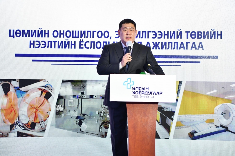 Үүний дараа Ерөнхий сайд Л.Оюун-Эрдэнэ Улсын хоёрдугаар төв эмнэлэгт ажиллаж, Цөмийн оношилгоо, эмчилгээний төвийн үйл ажиллагаатай танилцсан юм. Ерөнхий сайд Л.Оюун-Эрдэнэ “Цөмийн оношилгоо, эмчилгээний ач холбогдол өссөөр байгаа энэ үед Монгол Улсын эрүүл мэндийн салбарт дэлхийн анагаах ухааны шилдэг технологи нэвтэрч байна. Цөмийн оношилгоо, эмчилгээний төв ПЭТ компьютертомографи оношилгоог Монгол Улсад шинээр хийж эхлэхээр боллоо. Монгол Улсын хүн амын дунд зүрх судас, хорт хавдрын шалтгаантай өвчлөл, нас баралт тэргүүлэх байрыг эзэлж байна. Энэ оношилгоо эдгээр өвчний хүндрэлээс сэргийлэх, нас баралтыг бууруулахад чухал ач холбогдолтой” гэлээ. Мөн ПЭТ компьютертомографи оношилгоо болон цацраг идэвхт эмийн үйлдвэр байгуулахад хүчин чармайлт, хичээл зүтгэл гарган ажилласан эрүүл мэндийн салбарын удирдах ажилтнууд, эмч, мэргэжилтнүүд төдийгүй Бүгд Найрамдах Солонгос Улсын түншүүдэд Ерөнхий сайд Л.Оюун-Эрдэнэ энэ үеэр талархал илэрхийлэв.
